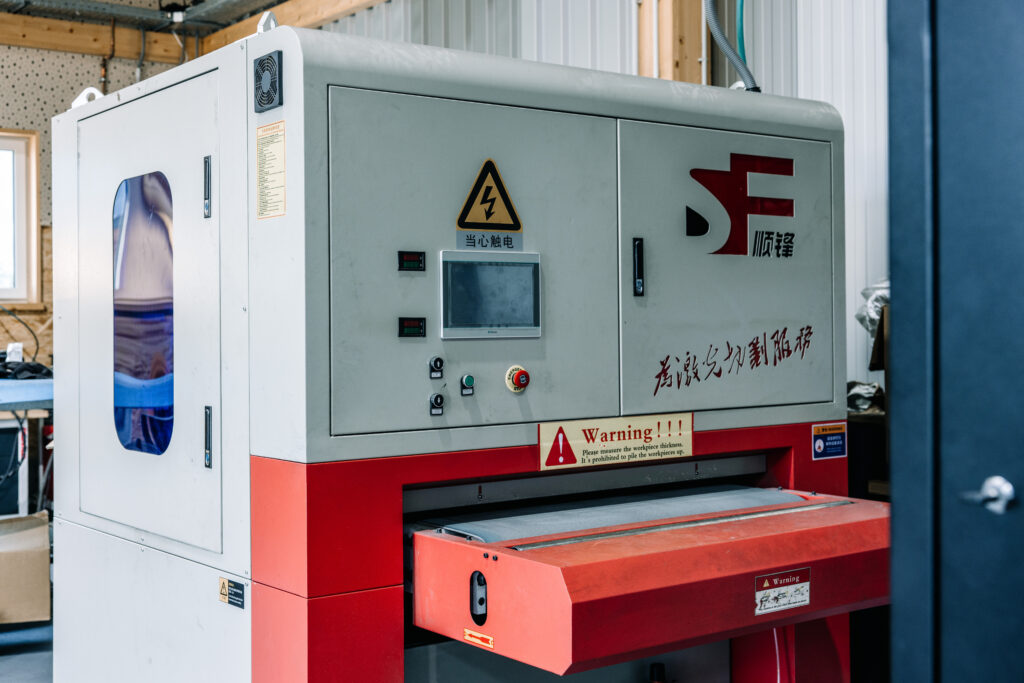 Mithilfe unserer Entgrat- & Schleifmaschine werden die scharfen, rissigen Kanten, welche beim Zuschneiden von Blech entstehen, abgerundet bzw. entgratet.